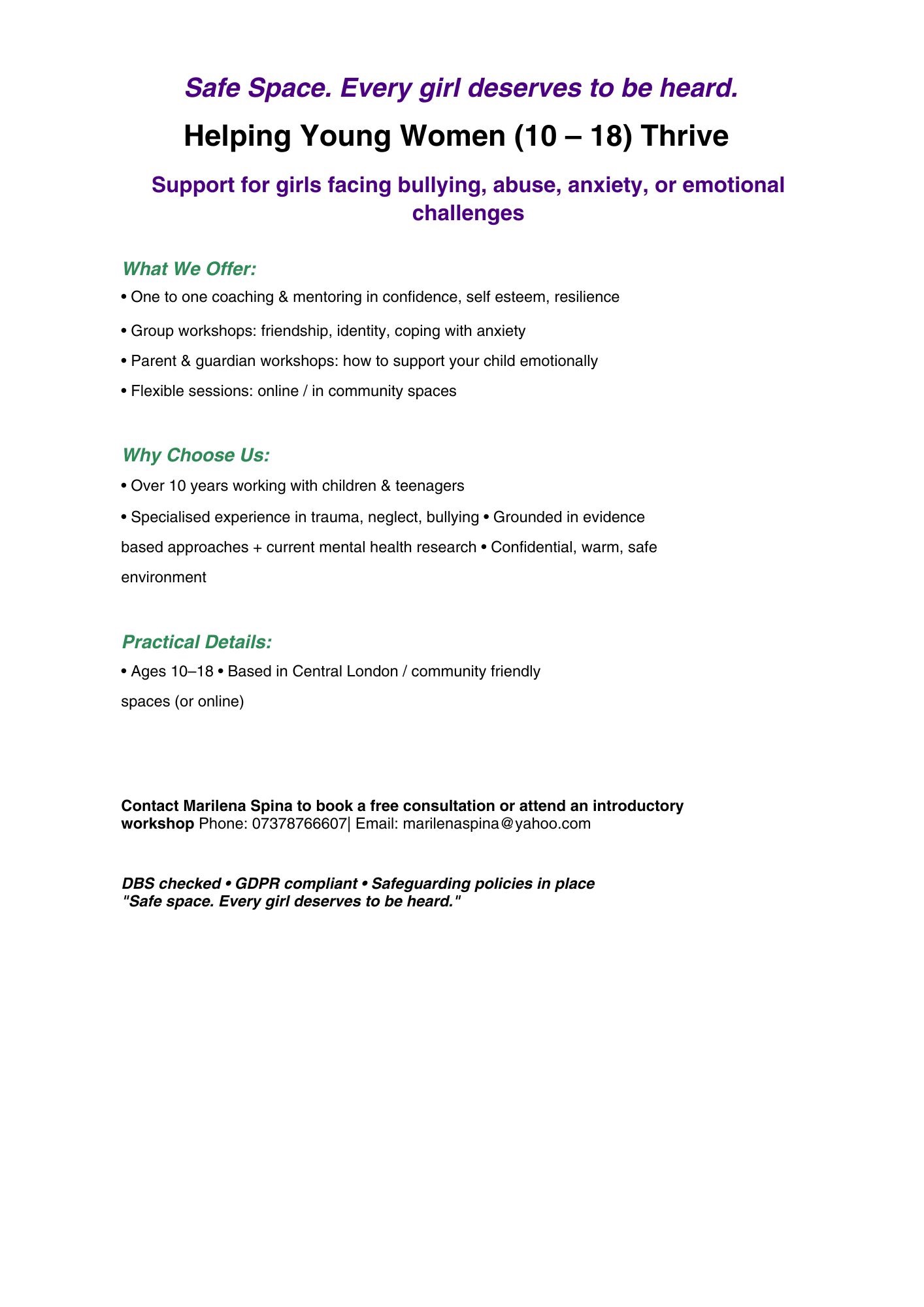 Flexible, confidential, and supportive sessions tailored to individual needs